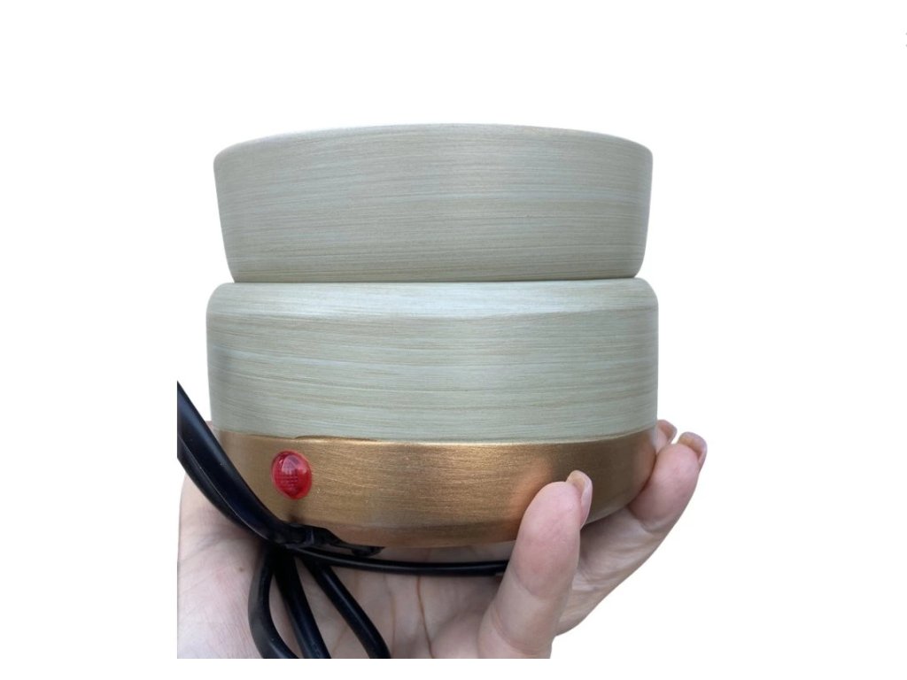 Táto keramická elektrická aromalampa Vás zaručene nadchne! Kúpite si totiž dva prístroje v jednom. Môžete ju používať s vrchnou mištičkou na vkladanie vonného vosku či kamienkov... alebo mištičku zložiť a priamo na vrchnú platničku postaviť vonnú sviečku v sklenom obale. Docielite tak dôkladné využitie zvyškov vonného vosku, ktoré zvyknú zostávať na dne sviečok.