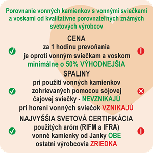 Porovnanie vonných kamienkov s vonnými sviečkami a voskami od kvalitatívne porovnateľných známých svetových výrobcov